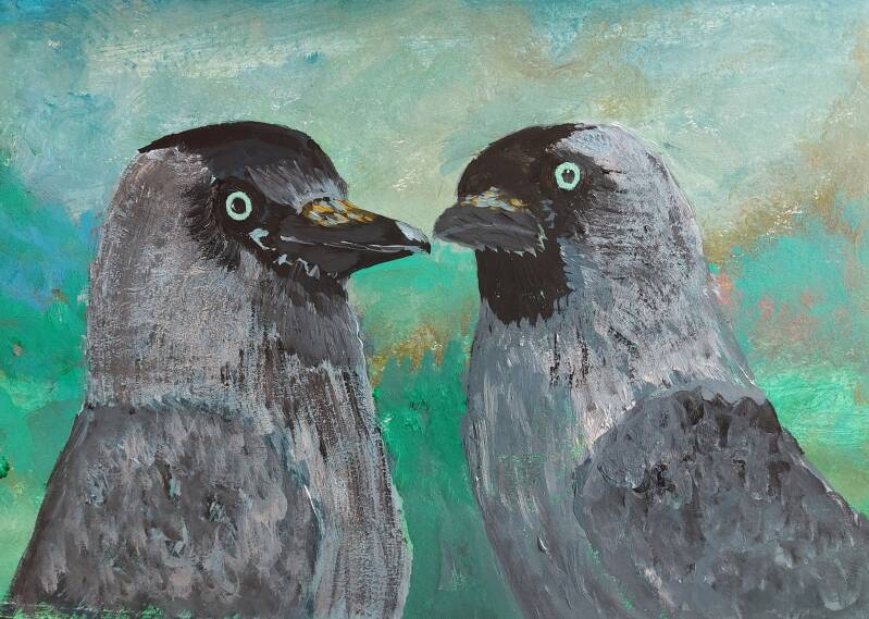 ‘Zo trouw als een kauw’ is een gevleugelde uitdrukking. Kauwen zoeken al in hun puberteit een partner voor het leven en als de grote liefde onvindbaar blijkt, brengen ze dat leven liever door als vrijgezel. En ze leven best lang, kauwen kunnen wel vijftien jaar worden, jaren die ze doorbrengen in groepen waar strenge hiërarchische verhoudingen heersen. Hoe groter de kauw hoe hoger in de pikorde. Vervelend misschien voor degenen onderin, maar het geeft wel rust in de tent. Waar veel vogels moeilijk doen over voedsel, zijn kauwen pragmatisch, ze vinden het geen probleem het met soortgenoten te delen. Kan een hoop gedoe schelen. In die groepen haal je de stelletjes er zo uit, want die doen vrijwel alles samen. Broeden gebeurt ook in kolonies, maar al wonen ze dicht bij elkaar in boomholtes, daken en kerktorens, een buurkauw moet het niet wagen even ongevraagd binnen te wippen.